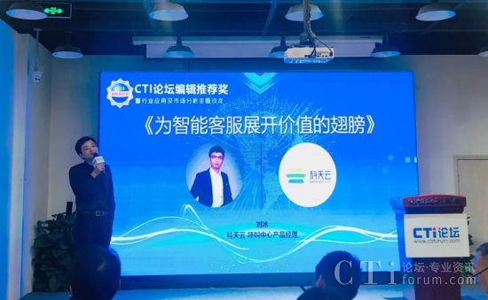 近日,2019年度CTI論壇編輯推薦獎頒獎暨行業(yè)應(yīng)用及市場分析主題沙龍在北京舉行,憑借在呼叫中心領(lǐng)域突出的市場表現(xiàn)和出色的團隊管理能力,科天云榮獲2019年度CTI論壇編輯推薦獎之云客服系統(tǒng)和最佳管理人獎兩項大獎??铺煸坪艚兄行漠a(chǎn)品經(jīng)理劉冰在現(xiàn)場發(fā)表主題演講。