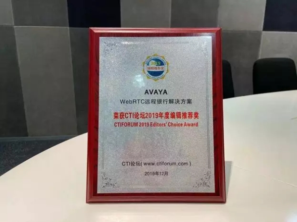 Avaya為招商銀行信用卡中心打造的WebRTC遠(yuǎn)程銀行解決方案,憑借領(lǐng)先的技術(shù)架構(gòu)與優(yōu)質(zhì)的服務(wù),成功斬獲2019年度CTI論壇編輯推薦獎。