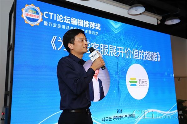 科天云是TCL與思科共同投資的企業(yè),擁有優(yōu)質(zhì)的協(xié)作云產(chǎn)品基因。自營研發(fā)的呼叫中心系統(tǒng)提供服務營銷一體化解決方案。深度融合呼叫中心、線路資源、智能應用、打造主動協(xié)作營銷平臺,發(fā)掘企業(yè)應用場景數(shù)據(jù),觸發(fā)價值??铺煸坪艚兄行漠a(chǎn)品經(jīng)理劉冰分享的關鍵詞是《為智能客服展開價值的翅膀》。