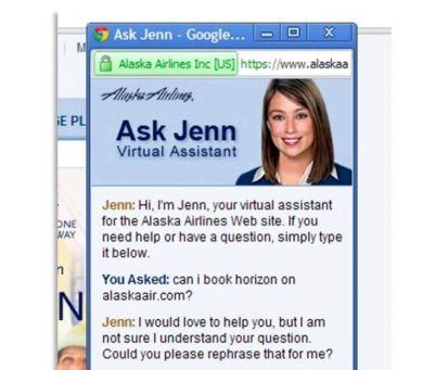 舉個(gè)很久遠(yuǎn)的例子:阿拉斯加航空公司(Alaska Airlines)和他們的虛擬助理「Just Ask Jen」。