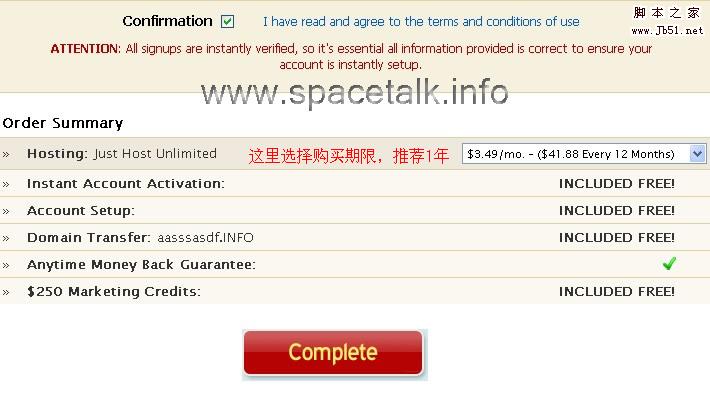 注:若需要購買獨(dú)立ip($19.95每年),購買空間成功后,后臺(tái)有提示,到那里購買。