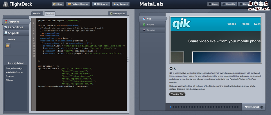 這家被抄襲的公司叫 MetaLab, Mozilla 的這款產(chǎn)品叫 Jetpack,是一個(gè)用來設(shè)計(jì) Firefox 擴(kuò)展的平臺(tái),從產(chǎn)品截圖上來看,該產(chǎn)品的界面幾乎全盤照搬了 Metalab 的網(wǎng)站設(shè)計(jì)。
