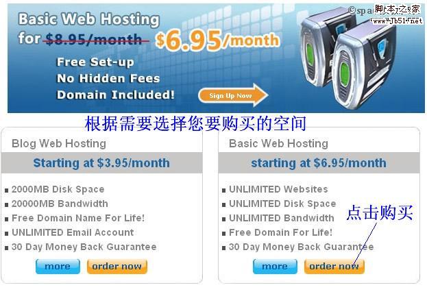 2、根據(jù)需要選擇你要購(gòu)買(mǎi)的空間類(lèi)型,這里以Basic Web Hosting類(lèi)型空間為例。