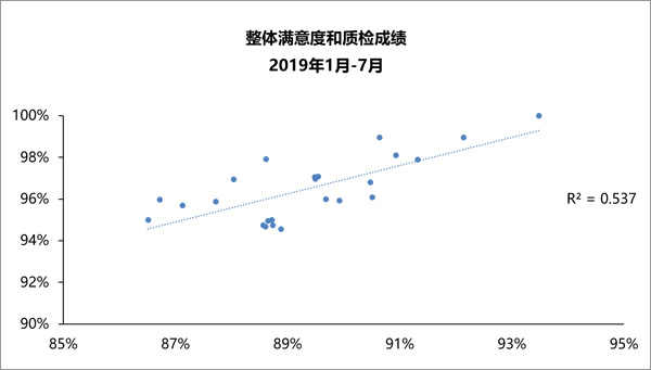 廣東電網(wǎng)客服中心持續(xù)對比分析整體滿意和整體最終關(guān)鍵錯(cuò)誤結(jié)果,以及屬性層面滿意度和顧客關(guān)鍵錯(cuò)誤結(jié)果,逐漸使兩組數(shù)據(jù)呈現(xiàn)出較強(qiáng)的相關(guān)性,表明內(nèi)部質(zhì)檢已經(jīng)可以幫助廣東電網(wǎng)客服中心有效地預(yù)測外部顧客聲音,是有效的質(zhì)檢