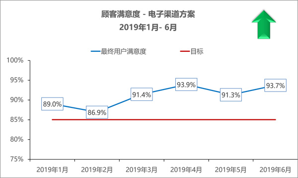 中心的顧客滿意度水平月度績效持續(xù)保持在90%左右,尤其是電子渠道方案,顧客滿意度有明顯改善,并顯示出較好趨勢
