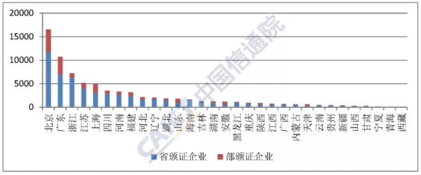 目前,全國增值電信業(yè)務(wù)市場區(qū)域發(fā)展不均衡特征突出。在18473跨地區(qū)企業(yè)中,注冊地在北京的4659家,廣東的3764家,上海的1841家,三地集中了55.6%的跨地區(qū)企業(yè)。