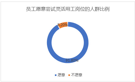 對靈活用工認(rèn)知度的提升,直接推動了員工對靈活用工崗位的接受度,參與本次調(diào)研的員工中有91.8%表示“愿意嘗試靈活用工的崗位”,表示不愿意的人群比例僅為8.2%。