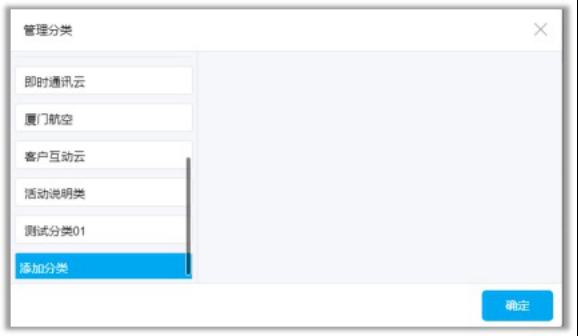然后由管理員針對于所添加的知識內(nèi)容進(jìn)行分類,點(diǎn)擊“管理分類”,可添加分類名稱。如產(chǎn)品介紹類,活動說明類等。