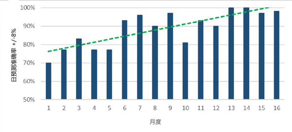 以下是22個主要客戶之一的預(yù)測準(zhǔn)確性,與大多數(shù)客戶的一樣,顯示出積極而強勁的長期改善趨勢。