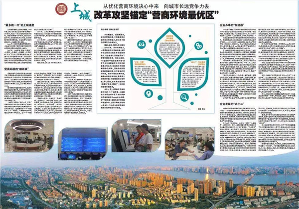 日前,《杭州日報》對于上城區(qū)營商環(huán)境的優(yōu)化進行了整版報道,上城已然成為杭州營商環(huán)境建設(shè)的樣板區(qū)和示范區(qū)。
