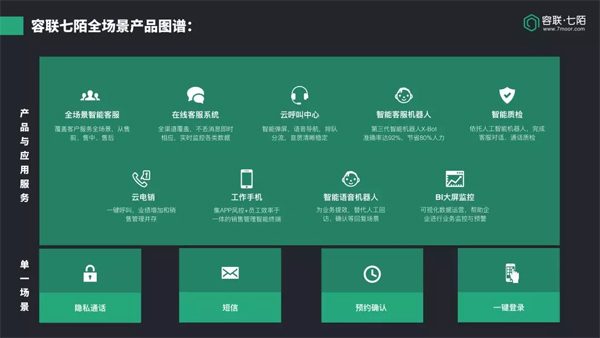 容聯(lián)七陌作為智能客服領(lǐng)域的領(lǐng)頭羊,依托“AI+大數(shù)據(jù)”能力,目前產(chǎn)品已經(jīng)覆蓋企業(yè)客戶服務(wù)全場(chǎng)景,為企業(yè)服務(wù)增效。