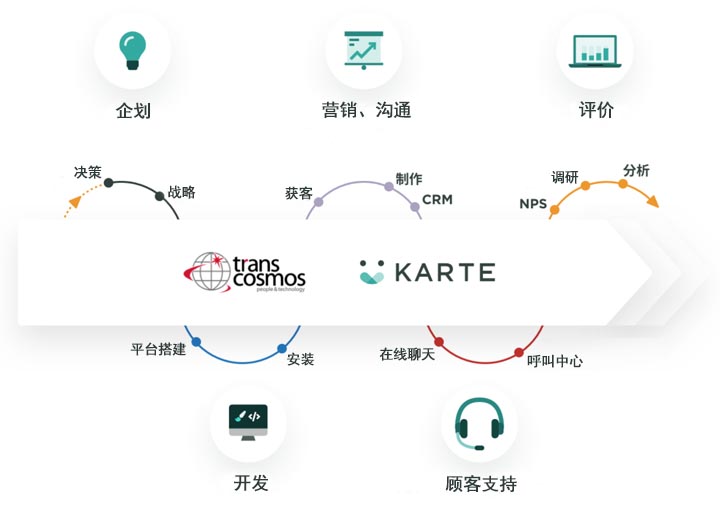 PLAID株式會社的CEO倉橋健太先生,對此次合作發(fā)表感言:“我司的KARTE平臺,不僅能應用于數字營銷,并且能貫穿企業(yè)從業(yè)務開發(fā)到客戶支持的整個價值鏈,靈活利用基于顧客角度的各種數據。通過與transcosmos通力合作,為不同企業(yè)及其內部,實現(xiàn)基于顧客角度的數字化轉型,為提升企業(yè)的整體產能作貢獻。”