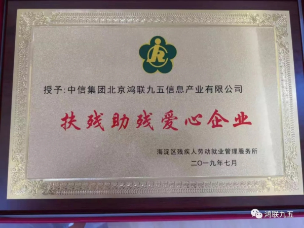 經過前期激烈角逐,我司入選并榮獲殘聯(lián)扶殘助殘愛心企業(yè)稱號。這一稱號的獲得,充分肯定了鴻聯(lián)九五做出的貢獻及正向的社會價值。