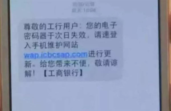假冒銀行鏈接詐騙:騙子發(fā)短信給用戶,讓用戶點(diǎn)擊鏈接完善銀行卡信息。用戶進(jìn)入鏈接-假網(wǎng)站,輸入賬號密碼,點(diǎn)擊獲取動(dòng)態(tài)密碼。這時(shí),騙子也在真官網(wǎng)上進(jìn)行操作,輸入用戶提交上來的動(dòng)態(tài)密碼。然后,秒秒鐘,用戶賬戶余額歸0.