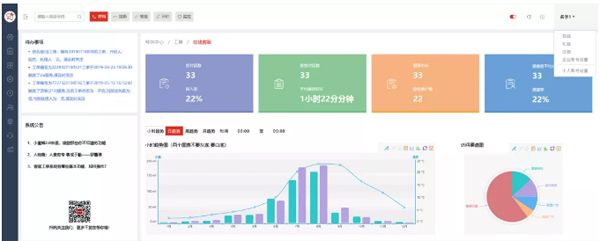 主頁新增了【待辦事項(xiàng)】和【系統(tǒng)公告】區(qū)域,呼叫中心、工單和在線客服多維度展示數(shù)據(jù)和報(bào)表統(tǒng)計(jì),第一時(shí)間獲知最新任務(wù)和數(shù)據(jù)。