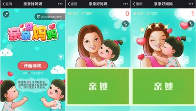 親親好媽媽:麻麻辛苦操勞了一輩子,節(jié)日告白,怎么吻她也不嫌多!粉絲點(diǎn)擊“親她”按鈕,即能為媽媽送上一個(gè)吻。在規(guī)定時(shí)間內(nèi),送吻越多,得分越高。