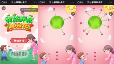 我給麻麻獻(xiàn)朵花:世上只有麻麻好,麻麻待我像塊寶。麻麻的愛與關(guān)懷無(wú)限大,我給麻麻獻(xiàn)朵花。粉絲只需點(diǎn)擊屏幕,往轉(zhuǎn)動(dòng)的圓盤上插上鮮花。在規(guī)定時(shí)間內(nèi),插的越多,得分越高。