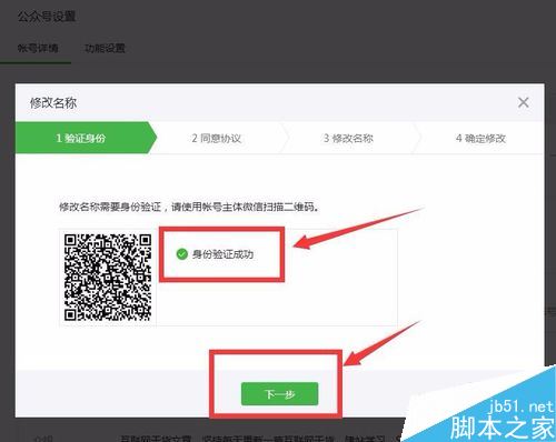 當(dāng)我們點(diǎn)擊修改名稱的時(shí)候,這時(shí)候就會(huì)跳出了一個(gè)頁(yè)面來(lái),首先要我們用微信(管理員的私人微信)掃描驗(yàn)證!