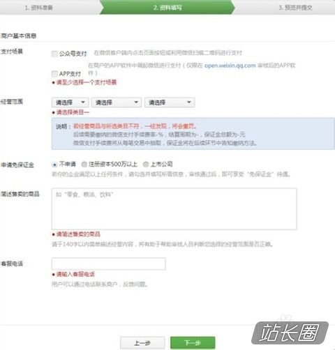 商戶基本資料填寫一:選擇最上面一項,首先填寫商戶基本資料,申請所需資料以及步驟提示。