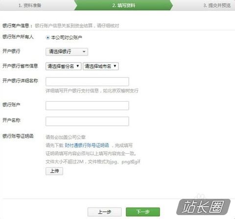 財務(wù)審核資料二:根據(jù)提示步驟,提前準備好資料,點擊》=準備完畢,填寫資料。這里需要填寫,企業(yè)對公帳號和加蓋公司公章的證明函。