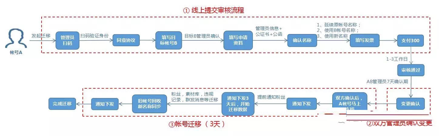兩個賬號所屬主體的公司公章,賬號遷移雙方的微信后臺截圖、公眾號的認證申請公函或者微信后臺協(xié)議。