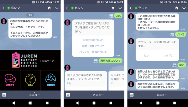 transcosmos集團(tuán)(中文名:大宇宙集團(tuán);以下簡稱:transcosmos;總部:日本東京;總裁兼COO:奧田昌孝)為東京電力旗下的東京電力能源伙伴株式會(huì)社(以下簡稱:東電EP;總部:日本東京;總裁:川崎敏寬)于2018年7月2日啟動(dòng)的共享充電寶服務(wù)“JUREN”提供客戶支持服務(wù)。通過LINE,以聊天機(jī)器人和客服人員在線的方式提供咨詢服務(wù)。