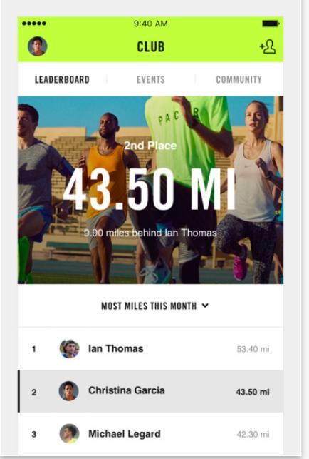 耐克Run Club使用了社交和游戲元素,比如這個(gè)排行榜