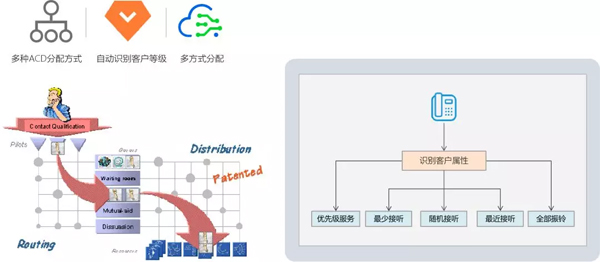 智能路由可通過多種分配方式、自動識別客戶等級或?qū)傩裕磧?yōu)先級、最少接聽、最近接聽、隨機接聽的分配方案進行分配。
