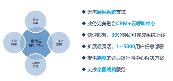 鵬為云呼叫中心系統(tǒng)底層系統(tǒng)采用多組件微服務+云計算的技術(shù)方案,快速部署,綜合應用;開放標準API/SDK接口,供隨時調(diào)用;管理平臺提供豐富的功能,業(yè)務系統(tǒng)支持自定義;支持電話、APP、H5等跨渠道統(tǒng)一接入。