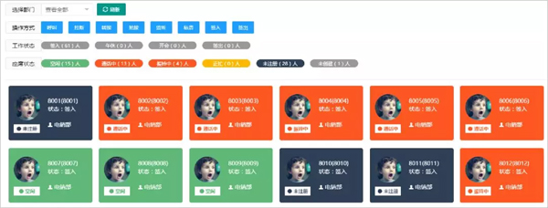 多樣化的坐席監(jiān)控展示頁面,靈活的操作方式,呼叫、掛斷、轉(zhuǎn)接、監(jiān)聽、簽入、簽出等,實時的監(jiān)控體系、隊列監(jiān)控及管理。