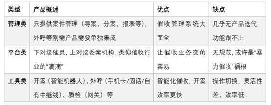 催收行業(yè)繁盛時(shí)期,為催收行業(yè)提供服務(wù)的金融科技類公司可大致劃分為以下三大類: