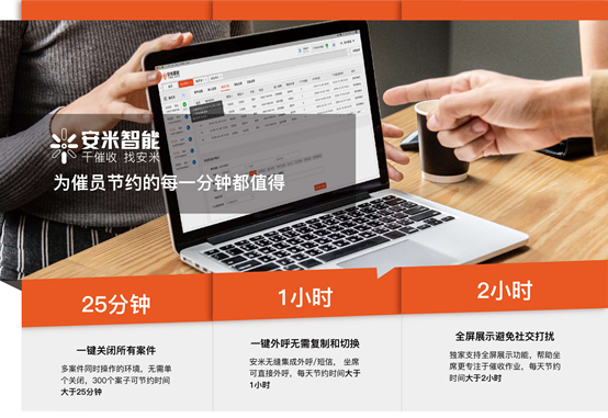 本著“為催員節(jié)約的每一分鐘都值得”的產(chǎn)品設(shè)計(jì)理念,安米智能目前已為催收機(jī)構(gòu)提供“團(tuán)隊(duì)管理”、“產(chǎn)品管理”、“批次管理”、“案件管理”、“基礎(chǔ)報(bào)表”、“回款管理”、“減免管理”等催收管理功能;提供“全國屬地號(hào)碼催收”、“三網(wǎng)短信”、“智能開案”、“智能語音質(zhì)檢”等服務(wù)。