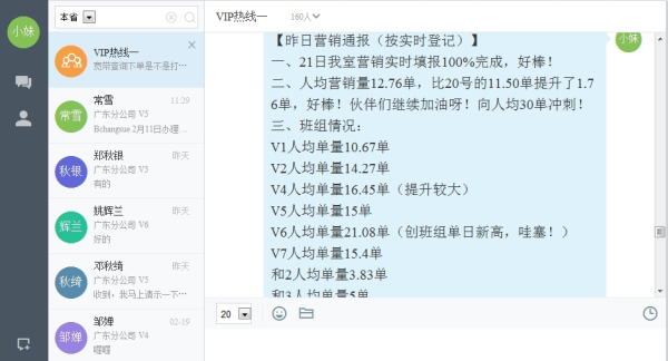 1)每天一早通過(guò)座席交流、彈框便箋、微信全方位把昨天營(yíng)銷情況進(jìn)行通報(bào),讓伙伴們來(lái)挑戰(zhàn):