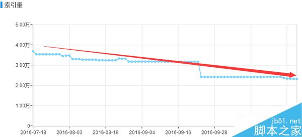 如上圖小編是今年三月份開始接手的這個網(wǎng)站項(xiàng)目,當(dāng)時并木有通過逆向思維去解決網(wǎng)站存在的收錄問題,只是經(jīng)驗(yàn)性的簡單分析了一下網(wǎng)站的日志,在站長后臺增加了sitemap推送和在服務(wù)器上部署了主動推送功能,短時間內(nèi)的確效果明顯,該頻道的頁面收錄呈現(xiàn)良好的上升趨勢,可是通過圖表可以看出,收錄量在達(dá)到6月份的時候一直到7月份中旬沒有進(jìn)行任何明顯的變化,從7月中旬之后小編當(dāng)時就有一種危機(jī)感,職業(yè)上的直覺告訴我,接下來一段時間該頻道的收錄會呈現(xiàn)大幅下降的趨勢,結(jié)果果不其然,如下圖: