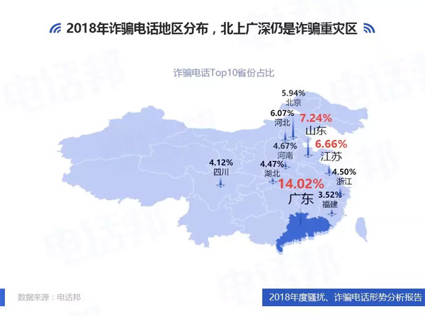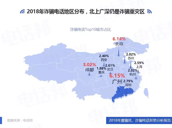 4、2018年詐騙電話地區(qū)分布,北上廣深仍是詐騙重災區(qū)