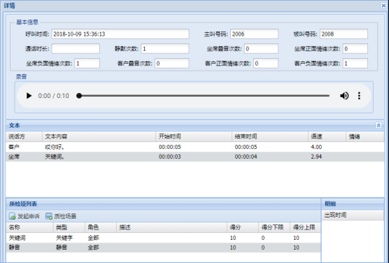 支持智能質(zhì)檢與人工復(fù)檢,能夠?qū)︿浺粑募械膯?wèn)題環(huán)節(jié)進(jìn)行準(zhǔn)確定位,不需要質(zhì)檢員對(duì)錄音文件進(jìn)行全面測(cè)聽(tīng),從而進(jìn)一步提高質(zhì)檢工作效率。