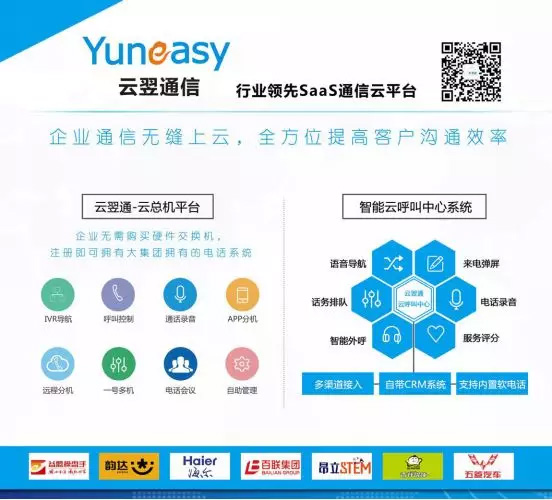 云翌通SaaS通信云平臺是云翌通信基于最新軟交換技術研發(fā)的企業(yè)通信云平臺,企業(yè)無需購買硬件交換機,也不需要復雜傳統(tǒng)布線,按需開通所需云總機、云呼叫中心功能,即可以享受大企業(yè)才有的集團總機及智能呼叫中心功能。