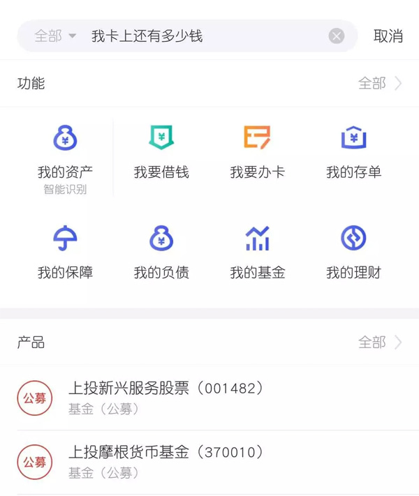多個(gè)業(yè)務(wù)模塊的整合,讓這一個(gè)小小的搜索窗口,不僅能夠?qū)崿F(xiàn)銀行相關(guān)咨詢(xún)服務(wù)、業(yè)務(wù)辦理的功能,而且將理財(cái)、活動(dòng)營(yíng)銷(xiāo)等等內(nèi)容一網(wǎng)打盡,提升了用戶(hù)的使用體驗(yàn)自不必說(shuō),對(duì)于銀行業(yè)務(wù)的融合作業(yè),特別是之前那些隱藏較深的業(yè)務(wù)、功能,更是一個(gè)極好的展示,推廣渠道。