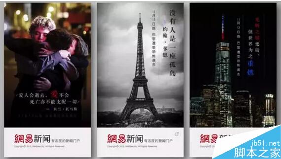 這是在面對「巴黎恐怖襲擊」這樣的大事件時,網(wǎng)易新聞做出的響應之一。以人文關懷的角度,去傳遞產(chǎn)品的品牌形象。