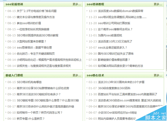 由此看來,大部分網(wǎng)站都有一個(gè)不好地方在于主要區(qū)塊的鏈接是按時(shí)間生成的(當(dāng)然新聞?lì)惖陌磿r(shí)間應(yīng)該給予最高權(quán)重),就拿我的網(wǎng)站來說,下面6個(gè)主要區(qū)塊都 是按照時(shí)間排序的,效果可能打折扣,所以我準(zhǔn)備去掉文章前面的時(shí)間,另外采用權(quán)重調(diào)用方式避免文章順序經(jīng)常變動(dòng),在上述操作過程中無疑增加了頁面的制作成 本(我需要精心挑選出一些好點(diǎn)的文章放在首頁),期待我的小心求證吧!