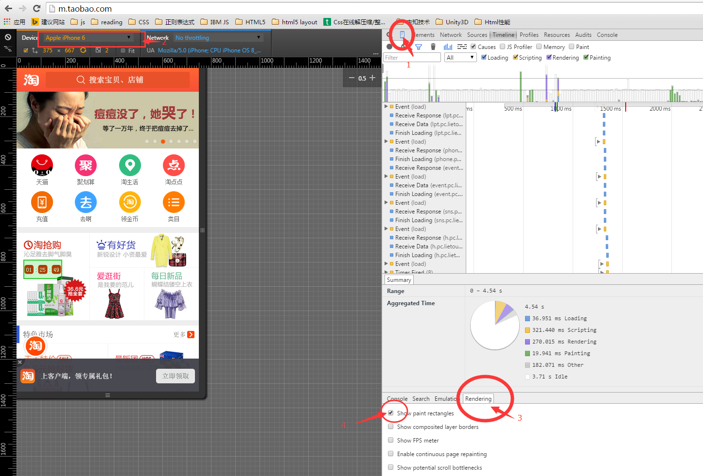 打開chrome,開啟開發(fā)者工具(F12)。打開模擬器,并選擇需要模擬的設(shè)備,在Console中選擇Rendering 選中第一條(Show paint rectangles)。若打開開發(fā)者工具后沒看見下方Console這塊可以按下Esc。