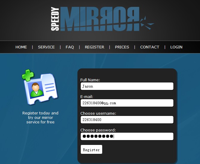 1.進入speedymirror官網(wǎng)注冊新賬戶,https://www.speedymirror.com/register.php