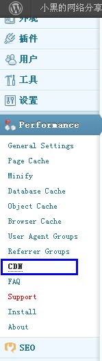 8.進入wordpress后臺插件管理,搜索并安裝插件W3 Total Cache,啟動插件并進入setting界面,首先啟動CDN: