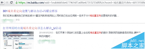 而我認(rèn)為原理并非一直投訴搜索引擎導(dǎo)致的排名上升,投訴多了,說不定不上升還可能會(huì)下降,而可能是通過搜索引擎URL提交的數(shù)據(jù),讓搜索引擎誤以為改網(wǎng)站用戶體驗(yàn)會(huì)比其他網(wǎng)站好。比如第一搜索“域名重定向”得到下方的URL: