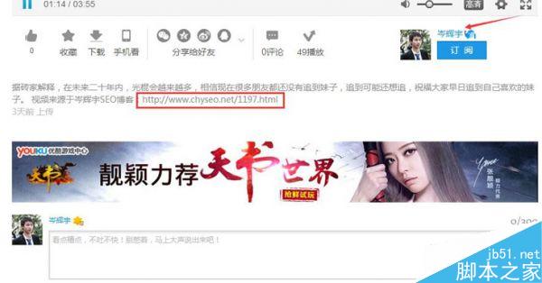 視頻簡介是用來介紹視頻的,最好簡介符合視頻說播放的內(nèi)容,否則審核很難通過,可以看看岑輝宇是如何做的,如圖所示:
