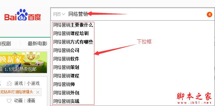 百度下拉框主要被應(yīng)用到的在搜索一個(gè)關(guān)鍵詞的時(shí)候,百度會(huì)推薦一些和這個(gè)關(guān)鍵詞相關(guān)聯(lián)的長尾詞出來讓用戶選擇搜索,從而省去了打字的煩惱。
