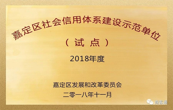 近日上海市嘉定區(qū)發(fā)展和改革委員會發(fā)布上海首批“社會信用體系建設(shè)示范單位”名單,商客通尚景獲評上海首批“社會信用體系建設(shè)示范單位”,獲選單位僅33家。