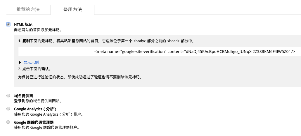 添加的時候,網(wǎng)站需要驗證權限,也就是證明這個網(wǎng)站是你的,因為之后會有一些影響到網(wǎng)站排名的操作,免得惡意破壞。