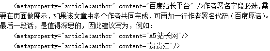 作者署名字段必選,需要在頁(yè)面做展示,如果該文章由多個(gè)作者共同完成,可再加一行作者署名代碼(百度原話)。最后一段話,是值得深思的,因此建議寫(xiě)為,例如: