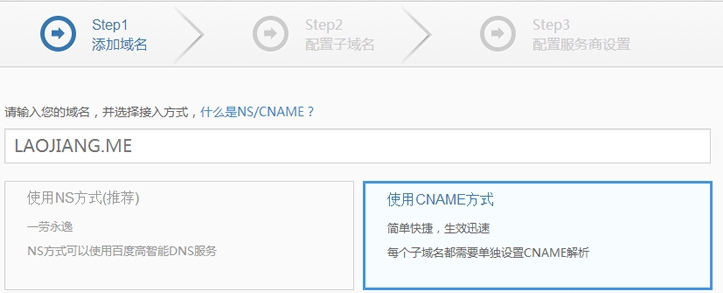 登陸賬戶之后我們就可以添加站點。這里我使用CNAME解析,域名采用DNSPOD管理DNS,因為后面我們會考慮到搜索引擎部分的解析用真實IP,而不用CDN的IP,這樣起到站點IP回流,有利于搜索引擎對于站點的體驗。
